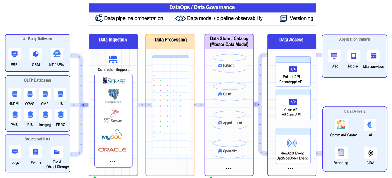 TapCDC 实时采集来自 Sybase、PostgreSQL、Oracle 等系统中的门诊、住院、预约、影像、病例等诊疗数据;