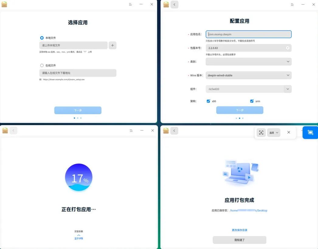 2024 年,推出与 wine 助手定位差异化的“UOS 应用迁移助手”,聚焦更多专业场景,主打将 exe 程序打包为 deb 包,支持绿色软件打包、ARM 架构运行等特性,满足运维人员、技术工程师及应用开发者的专业需求。