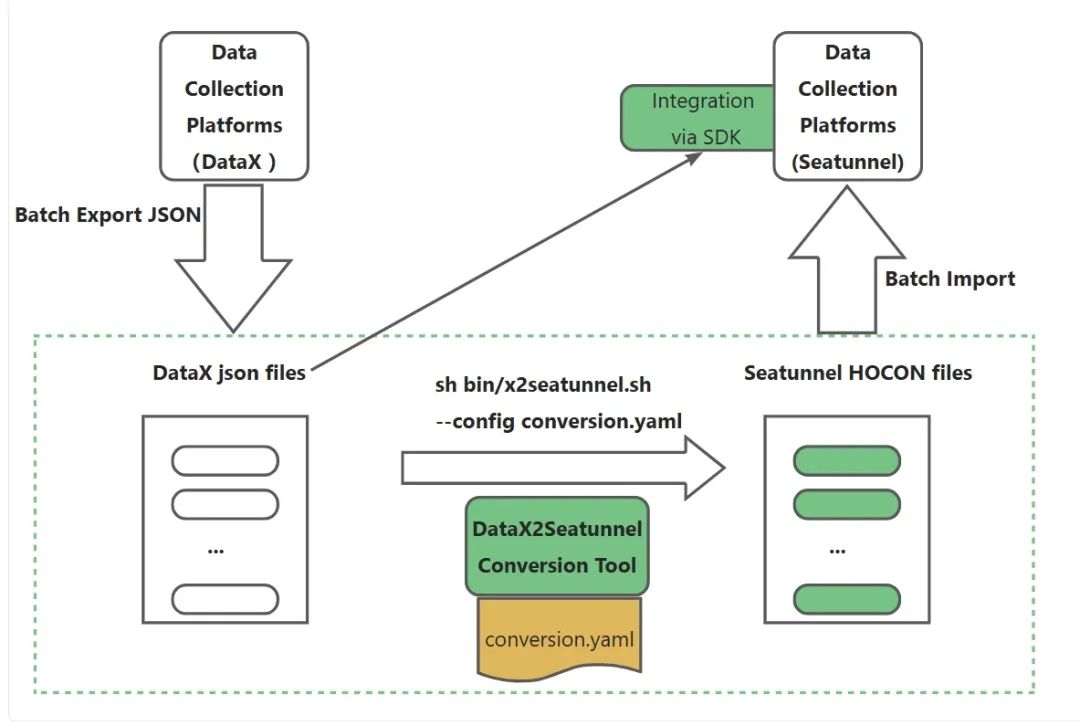为了帮助用户更顺利地迁移到 Apache SeaTunnel 平台,社区成员提出了一个实用建议:开发一个通用的配置转换工具,支持将多种数据集成工具的配置文件转换为 SeaTunnel 支持的 HOCON 或 JSON 格式。这样,用户在迁移过程中将更加省心高效。