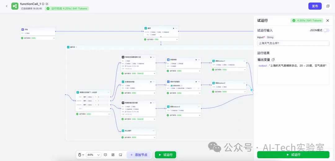 外层需要包装一个循环,通过Status判断当前是什么状态,应该怎么处理,是否需要继续循环 Status=0 代表新请求 Status=1 代表需要调用外部服务 Status=2 代表外部服务请求完成 Status=3 代表调用结束 每个步骤完成后,需要手动修改Status的值,让循环进行下一个步骤。 循环过程中的临时数据,需要存储在"循环变量"中,方便下次调用