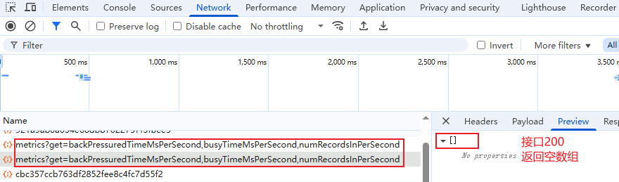 刚开始以为是WebUI rest接口超时或者其他异常,F12查看接口发现没错误,不过接口返回为空。查看Flink JobManager日志也没WARN或ERROR记录。于是,决定从接口入手,探究下相关源码,rest接口如图所示: