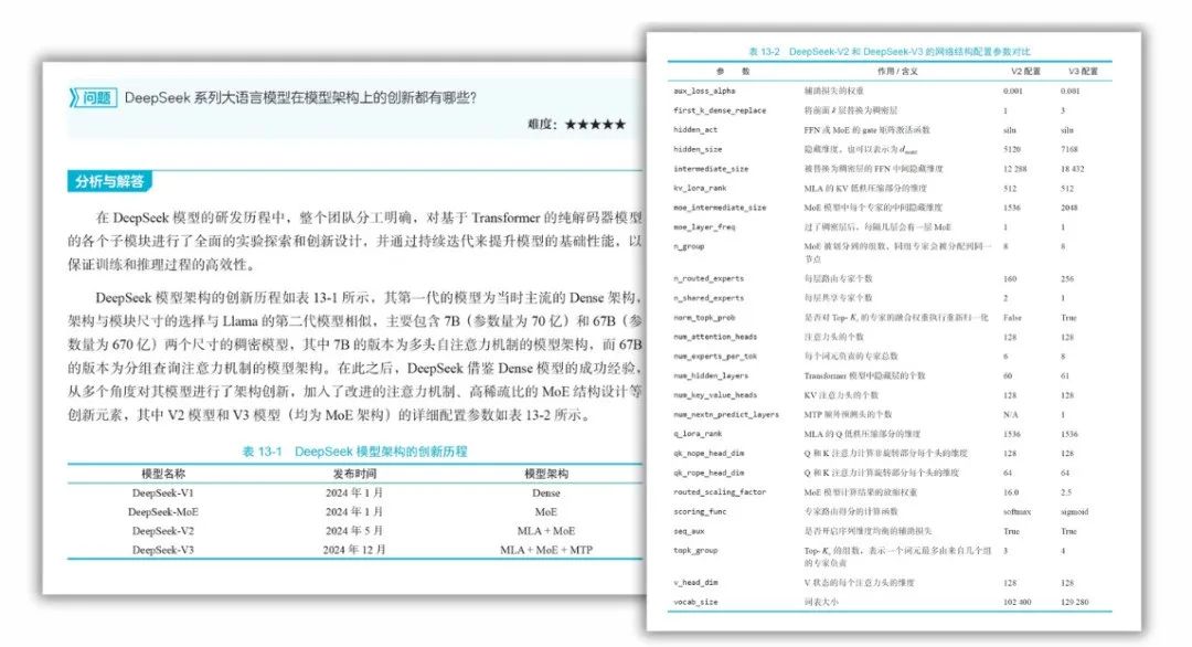 “讲原理”:每道题不仅都给出答案,更是从模型、算法、训练流程等角度深入拆解; “讲差异”:DPO vs PPO?LoRA vs PEFT?FlashAttention vs PagedAttention?都给你对比分析; “讲趋势”:大模型领域新兴解决问题的方法或者是对已有方法的演进,背后的动因和选择路径都有详解。 从知识本质出发,不仅仅是面试题