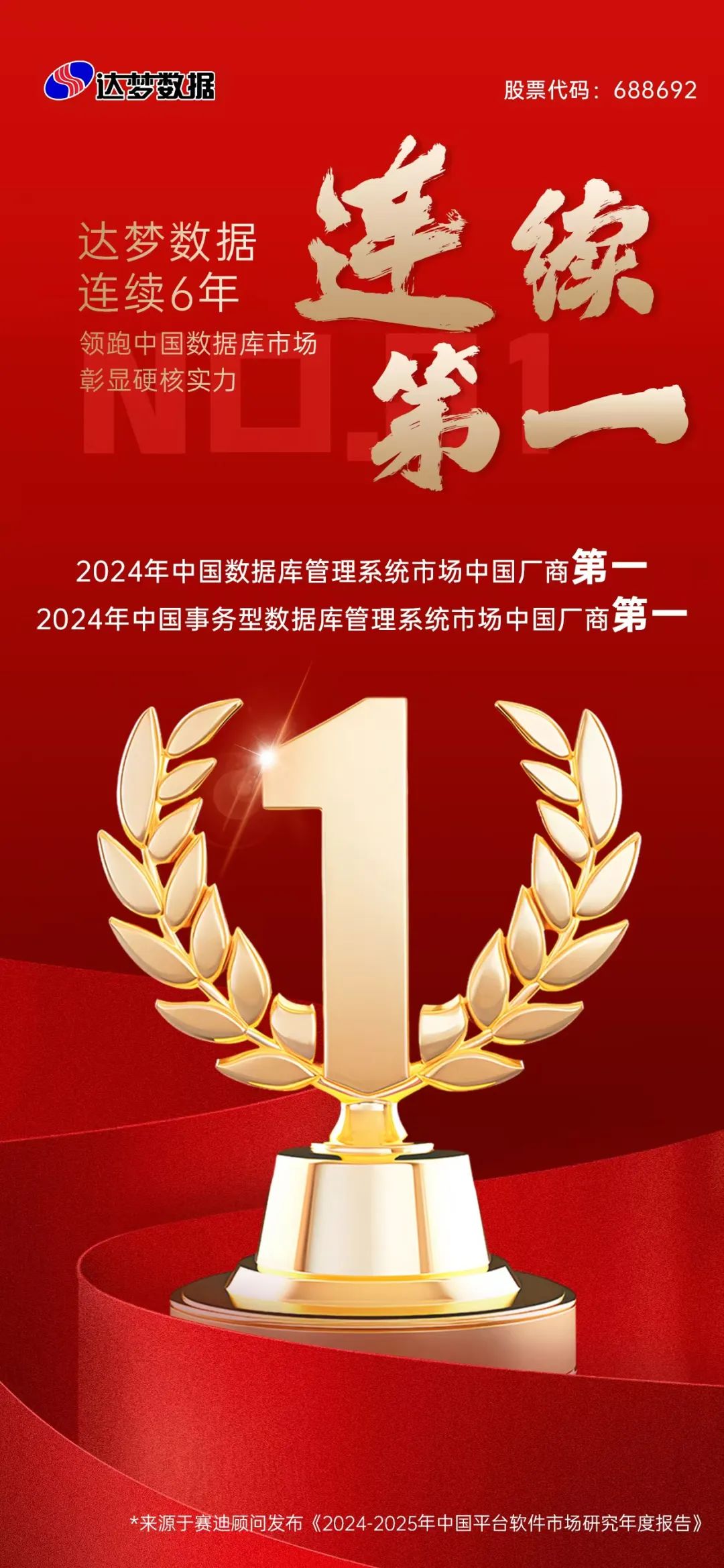 近期,权威调研机构赛迪顾问发布了《2024-2025年中国平台软件市场研究年度报告》,报告显示:武汉达梦数据库股份有限公司(以下简称“达梦数据”)在2024年中国数据库管理系统市场中国厂商、2024年中国事务型数据库管理系统市场中国厂商中均位列第一!这也是继2019年起,达梦数据连续6年领跑!凸显了达梦数据在技术创新与行业应用领域的综合竞争力。