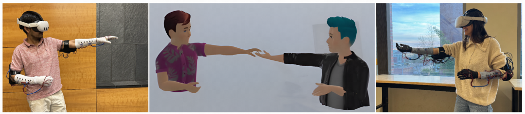 该系统包括配备小型振动马达的手套和袖套,可以模拟压力和运动等感觉。这使得用户能够在共享的虚拟空间中做出并感受到轻拍、握手和挤压等手势。用户还可以与虚拟物体互动并获得逼真的振动反馈。