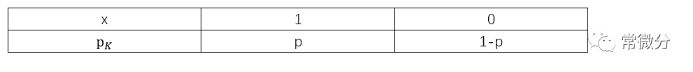 X取值分别为0和1, P为取值的概率,当X=1, P(X=1)=P ;当X=0  P(X=0)=1-P