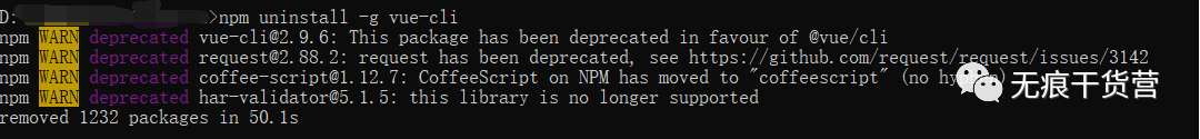 卸载后输入vue list 提示不是内部或外部命令则卸载完成