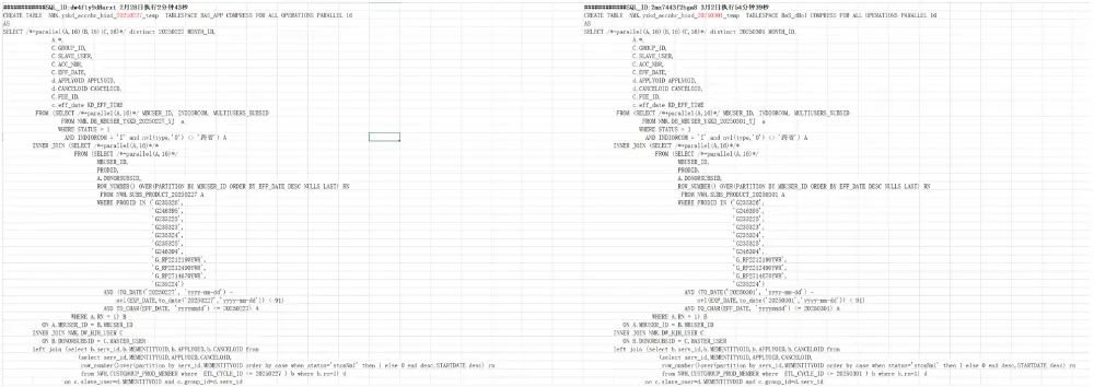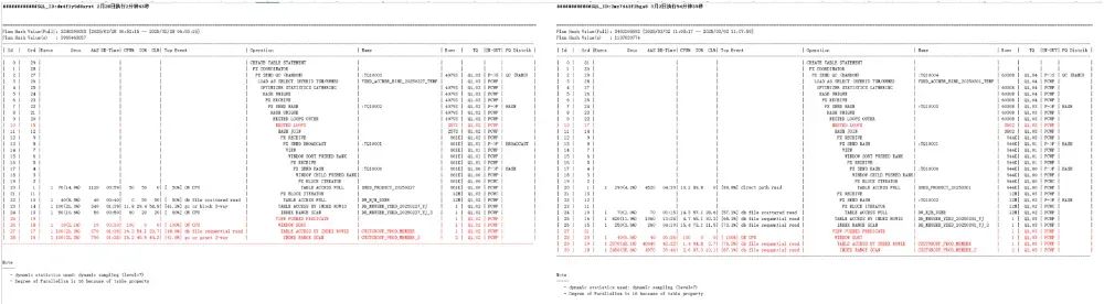 SQL_ID:dw4f1y9d8arxt 2月28日执行 2分钟43秒; SQL_ID:2mz7443f2bga8 3月02日执行 54分钟39秒。