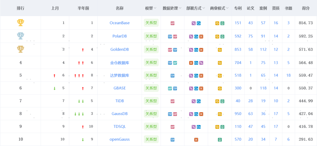 7月30日,赛迪顾问《2024-2025年中国平台软件市场研究年度报告》发布,电科金仓连续5年领跑关键应用领域销售套数第一,并同时蝉联中国医疗与交通行业数据库国产厂商销量双料冠军!❖ 电科金仓:《融合型数据库技术研究报告》编制工作启动7月16日,2025可信数据库发展大会上,中国信息通信研究院联合电科金仓正式启动《融合型数据库技术研究报告》编制工作。该报告将深入探讨融合型数据库的发展背景、关键技术、应用场景和未来展望。此外,在近期的全国信标委会议上,电科金仓作为《数据库管控平台技术要求》标准的牵头研制单位,在会上对该标准的研制团队建设、研制背景、研制内容等方面进行了全面解读。❖ 电科金仓×天玑科技:战略联手,共创数据库一体机新生态近日,国产数据库龙头企业电科金仓与国产基础设施一体化解决方案企业天玑科技正式签署战略合作协议。双方将围绕双方将围绕高性能、高可靠的数据库一体机产品研发、市场拓展及技术服务等领域开展全方位合作,共同推动国产高端数据库一体化平台解决方案在医疗、运营商、能源、政府等核心行业的规模化应用。❖ 金篆信科:GoldenDB荣登中国分布式事务型数据库市场第一近日,赛迪顾问发布《2024-2025中国平台软件市场研究年度报告》,金篆数据库GoldenDB荣登中国分布式事务型数据库市场第一,并凭借深厚的技术创新积累和全行业深入应用实践,被评为中国数据库管理系统市场领导者。近日,国内领先的科技产业信息服务平台「第一新声」正式发布了“2025年中国信创产业年度榜单”。崖山科技凭借其在信创领域的卓越实力与突出贡献,成功斩获“中国最佳信创厂商TOP50”及“中国最佳信创数据库厂商TOP15”两项重量级荣誉。同时,深圳计算科学研究院首席技术官、深圳崖山科技有限公司总裁陈志标,以其在推动国产数据库自主创新与信创实践中的先锋引领作用,荣登“中国信创产业先锋人物TOP30”榜单。这一系列殊荣,是对崖山科技核心技术突破和规模化替代路径创新的高度肯定。❖ OceanBase:HyBench首测数据库一体机产品,OB 一体机斩获佳绩近日,由北京奥星贝斯科技有限公司和杭州沃趣科技股份有限公司联合研发的OceanBase数据库一体机(以下简称ODM)凭借单机两路CPU的精简架构设计,在HyBench基准测试中获得了H-Score 1692.07分的优异成绩,成为首个完成该测试的数据库一体机产品。这一里程碑的结果不仅充分验证了ODM的卓越性能和超强硬件整合能力,同时也标志着HyBench基准测试体系实现重要升级,具备全面精准评估多元架构数据库产品的能力,将为行业提供更科学、权威的数据库选型参考标准。近日,武汉达梦数据库股份有限公司下属子公司四川蜀天梦图数据科技有限公司图数据库产品成功通过GB/T 45346-2025《信息技术 图数据库管理系统技术要求》国家标准测评。因此,蜀天梦图成为国内首家率先通过该新国标的图数据库厂商。
