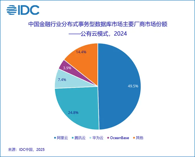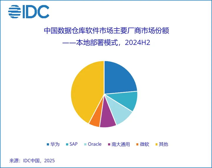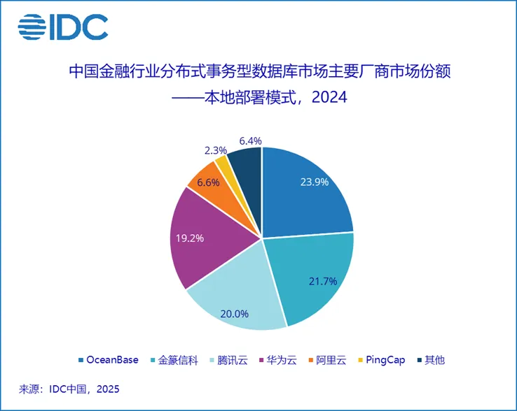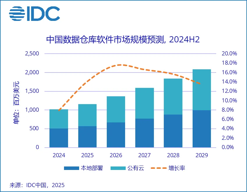 当前,“大模型+数据分析”市场呈现出显著的技术路线分化特征,厂商基于其技术能力与行业定位选择差异化的发展路径。沙丘智库近期发布《2025年“大模型+数据分析”主流厂商市场指南》,深入分析了“大模型+数据分析”市场的发展态势和竞争格局。沙丘智库观察到当前“大模型+数据分析”产品的三大发展趋势:一是生成式BI产品数量快速增加;二是头部厂商将AI Agent作为新的产品路线,实现主动决策;三是面向行业垂直领域的解决方案未来将发挥深度价值。❖ IDC:《中国金融行业分布式事务型数据库市场份额》近日,IDC 正式发布了《中国金融行业分布式事务型数据库市场份额,2024:行业进入下半场》。报告针对2024年中国金融行业分布式事务型数据库市场的规模、增长速度、主要玩家、市场与技术的发展趋势等内容进行了分析研究。IDC数据显示,2024年中国金融行业分布式事务型数据库整体市场规模达到20.37亿元人民币,腾讯云、阿里云、OceanBase、华为云、金篆信科是主要厂商。报告中整体市场还细分公有云模式和本地部署模式,以及银行业和保险证券行业,来呈现不同子市场的具体行业情况。❖ IDC:《2024 年下半年中国数据仓库软件市场跟踪报告》2025 年 7 月 24 日,IDC 发布的《2024 年下半年中国数据仓库软件市场跟踪报告》报告显示:2024 下半年中国数据仓库软件市场规模为 5.5 亿美元(39.33 亿元人民币),同比增长 8.7%。其中,本地部署数据仓库软件规模 2.8 亿美元(20.02 亿元人民币),同比增长 6.8%。公有云数据仓库软件规模 2.6 亿美元(18.59 亿元人民币),同比增长 10.9%。IDC 预测, 到 2029 年,中国数据仓库软件市场规模将达到 20.9 亿美元,2024 - 2029 的 5 年市场年复合增长率(CAGR)为 15.5%。