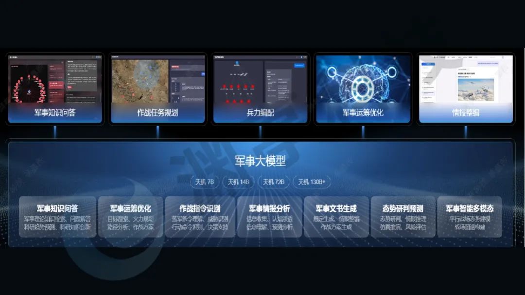 天机·军事大模型依托海量高质量军事业务数据与公司在情报、训练、装备、指控四大智能领域的深耕积累,构建覆盖“认知-决策-行动”的全场景军事智能生态体系。包含基础认知、本体逻辑和决策推演的“三层架构”,能够为超过70个复杂场景提供精准、可解释的智能支持。