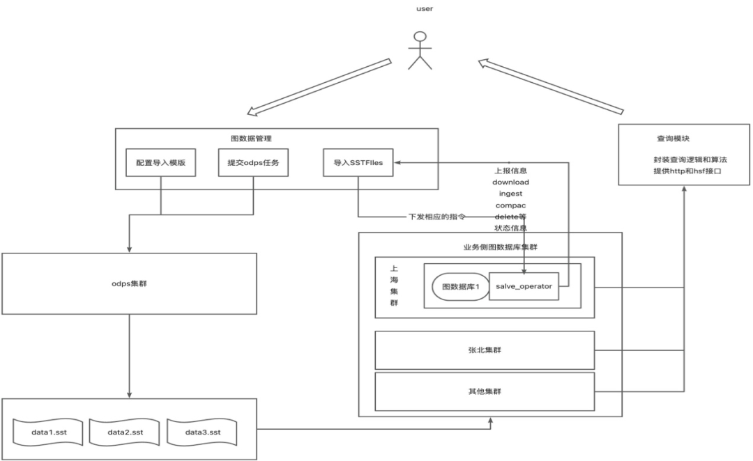 应用:提供图的 SDK,业务方可以在业务服务中引入 SDK,实时地对图数据库进行业务操作。 存储:基于 hippo (对应 K8S ) 的高可用服务物理集群和服务系统。 生产:这里主要进行导入图相关数据的处理。图数据主要有两种来源,第一种是业务方把 odps 数据 etl 成转成点和边的表,然后离线导入到图数据库中;第二种是业务线上实时产生的数据、或者通过 Flink 等流式处理产生的近线数据,调用在线批量写接口实时灌到图数据库中。 支撑平台:提供了 元数据管理、数据导入管理、监控报警、集群管理等依赖功能。