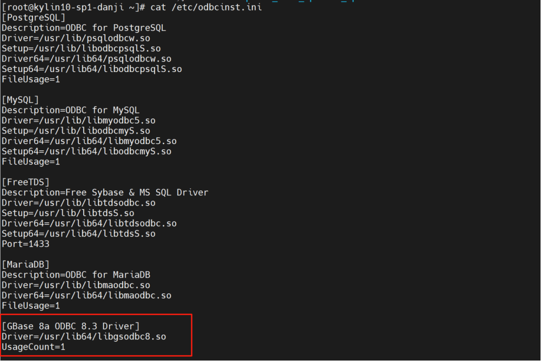 [root@kylin10-sp1-danji ~]#rpm -ivh GBaseODBC-8.3.81.53-build53.17-redhat7-x86_64.rpm
