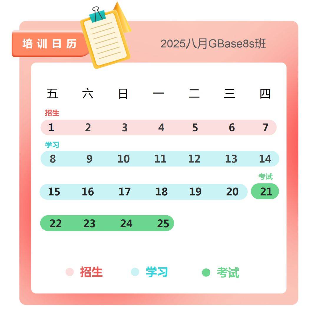 GBASE培训中心将于8月8日举办“2025八月GBase 8s 数据库认证培训班”,本期培训旨在快速掌握安全数据库管理系统GBase 8s。欢迎国产数据库爱好者踊跃报名!!