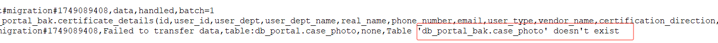 3.调整配置,再次迁移后,查看dtp迁移日志,解决tabel不存在问题