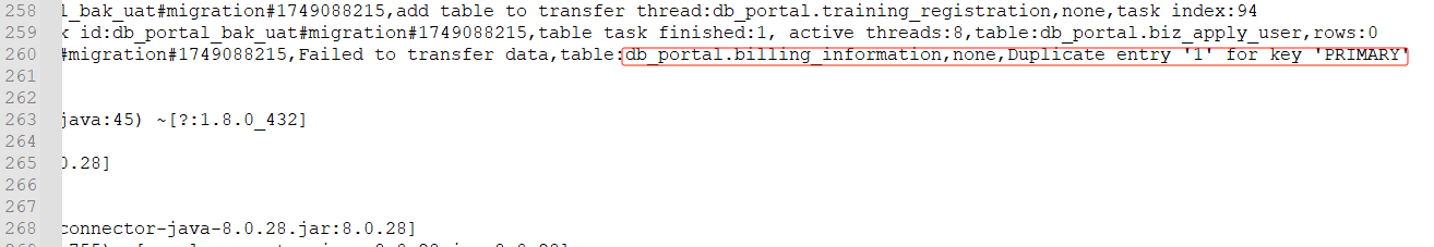 目标库mysql还保存有三个月前的旧数据,dtp迁移配置时,为不破坏原始mysql数据,并没有选择清除数据,数据冲突