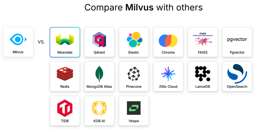 关于向量库的选型,可以从 Zilliz 官网 Milvus 和其他类产品的对比 中有一个更全面的认识。