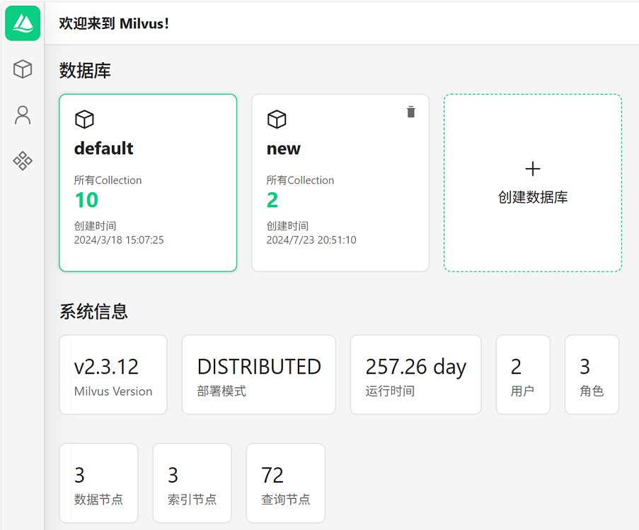 类似传统数据库的数据管理工具,Milvus 提供了名为 Attu 的一体化Web管理工具,该工具大大提高了业务在使用 Milvus 时的效率。
