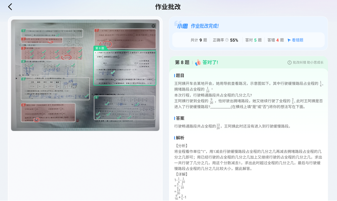好未来始终致力于通过先进的AI技术推动教育质量的全面提升。在教学场景中,如智能批改、相似题推荐以及试题去重等实际应用中,引入Milvus向量数据库技术后,解决了以往传统数据处理方式在超大规模数据检索中的性能瓶颈问题。Milvus能够处理亿级规模的向量数据,实现毫秒级的相似度检索,并保证高质量的相似数据召回,准确性和稳定性显著提升。相比之前基于常规数据库进行模糊匹配或索引检索的方式,Milvus极大地缩短了计算时间,同时显著提升了召回效果,赋能教育行业实现真正意义上的AI与教育深度融合。通过这种技术驱动,不仅优化了教育公平性,还极大地提升了教学效率,让教师和学生能够享受到更加高效与智能化的教学体验。以下是学习机作业批改的用户界面效果图。