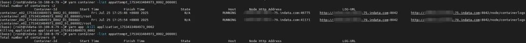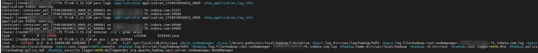 那么该怎么看呢?其实只要我们知道对应的 nodemanagerIp、port、containerId 就可以了,最开始查到如下命令: