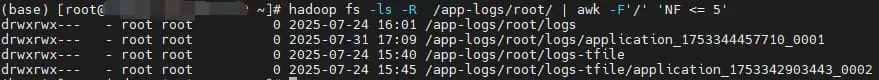 在没有配置 yarn.log-aggregation.TFile.remote-app-log-dir-suffix 时: