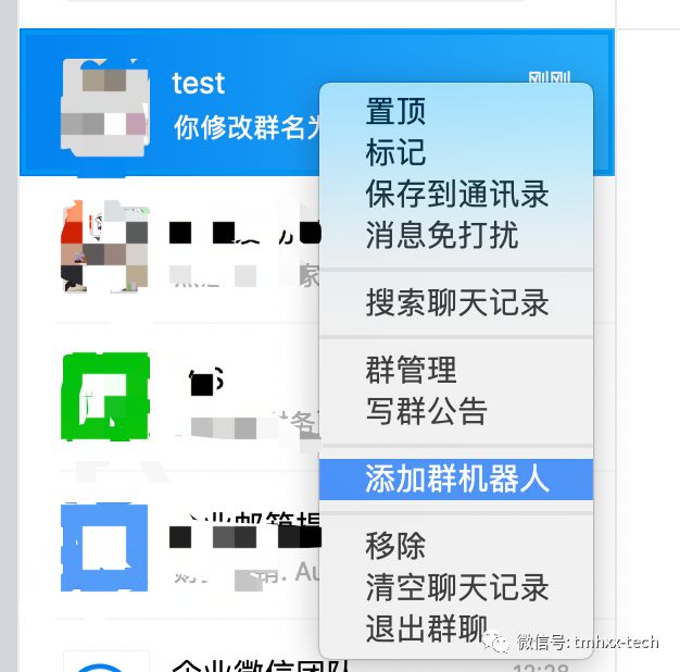 在群名称右键点击添加群机器人。