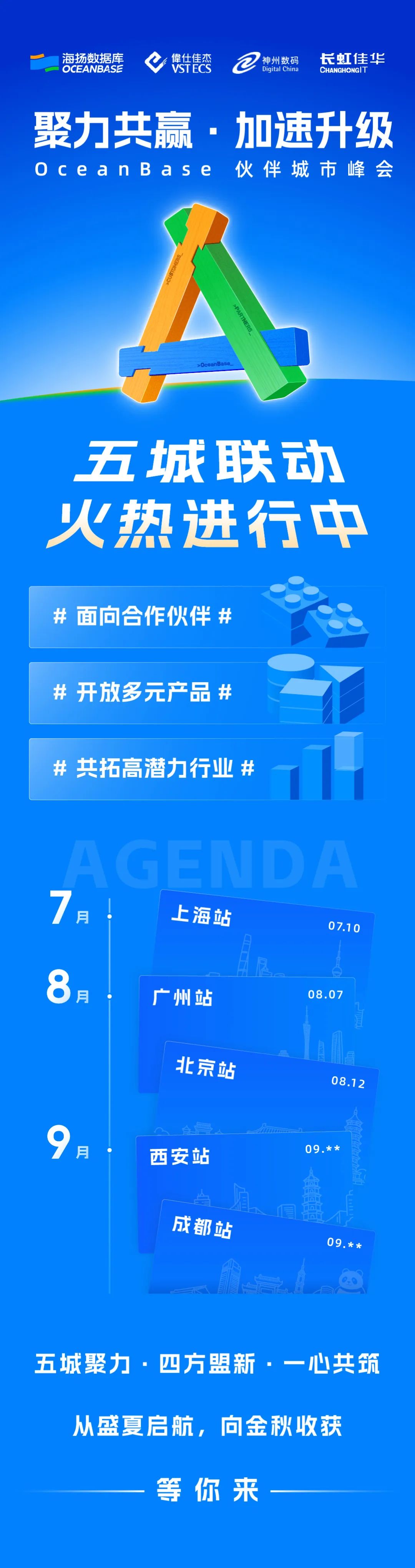 为此,继 3 月 27 日举行首届 OceanBase 合作伙伴大会后,特别启动“ OceanBase 伙伴城市峰会”五城联动。