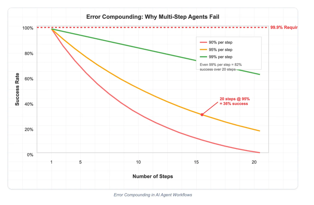 挑战:任务流程越长,出错概率越大,且错误会层层积累。