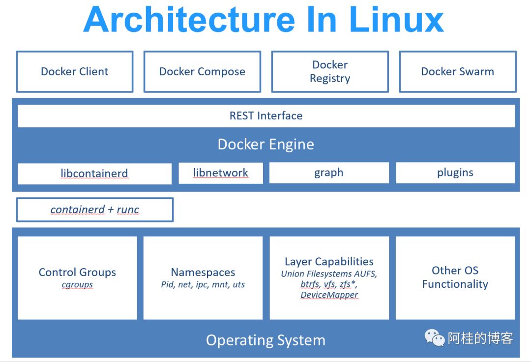 Docker 使用 Google 公司推出的 Go 语言 进行开发实现,基于 Linux 内核的 cgroup,namespace,以及AUFS 类的 Union FS 等技术,对进程进行封装隔离,属于 操作系统层面的虚拟化技术。由于隔离的进程独立于宿主和其它的隔离的进程,因此也称其为容器。最初实现是基于 LXC,从 0.7 版本以后开始去除 LXC,转而使用自行开发的 libcontainer,从 1.11 开始,则进一步演进为使用 runC 和 containerd。