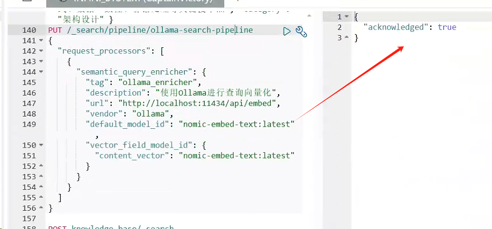 接下来配置 Easysearch 的 Ingest Pipeline,用于在数据写入时自动生成向量:
