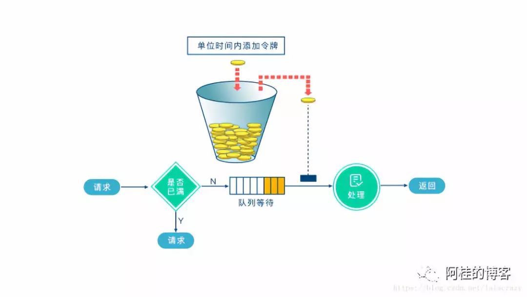 假设桶最多可以存发b个令牌。如果令牌到达时令牌桶已经满了,那么这个令牌会被丢弃;