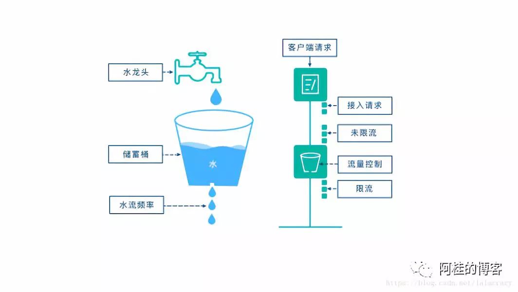 如果流入水滴超出了桶的容量,则流入的水滴溢出了(被丢弃),而漏桶容量是不变的。