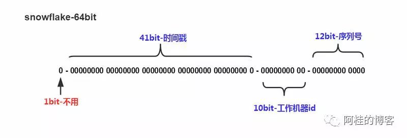 SnowFlake算法生成id的结果是一个64bit大小的整数,它的结构如下图: