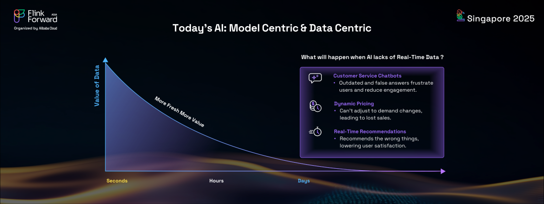 正如前面讨论所强调的,数据越新鲜,其价值就越高,这一原则在 AI 世界中尤其成立。考虑一下 AI 系统或智能体缺乏实时或新鲜数据的后果。例如,客户服务聊天机器人如果没有客户档案、订单或查询上下文的最新信息,就难以提供准确的答案。类似地,推荐系统如果无法获得客户行为、行动或兴趣的实时洞察,就无法提供相关建议。这些例子清楚地表明,实时能力是有效 AI 系统的固有特征。