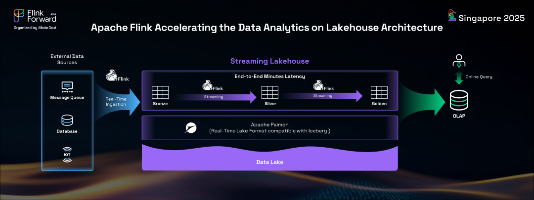 数据架构中最重要的进步之一是湖仓的兴起。这种新一代数据平台结合了数据湖和数据仓库的最佳特性,既提供了灵活性,又具备结构化数据管理能力。虽然湖仓架构上的许多工作负载仍以离线或批处理模式运行,但在湖仓环境中对实时数据分析的日益增长的需求突显了一个关键需求。这正是 Apache Flink 变得不可或缺的地方。通过将Flink的流处理技术与湖仓架构集成,企业可以实现端到端的实时解决方案。