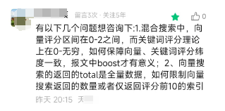 问题描述:1.混合搜索中,向量评分区间在0-2之间,而关键词评分理论上在0-无穷,如何保障向量、关键词评分纬度一致,报文中 boost 才有意义?