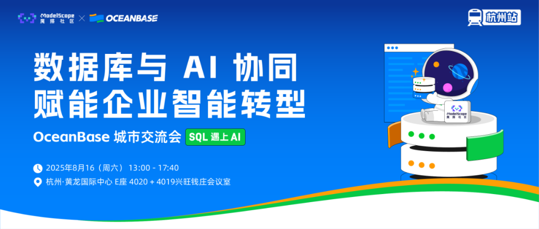 OceanBase × 魔搭社区 “ SQL 遇上 AI ” 城市交流会杭州站,期待你的参与,一同解锁数据库与 AI 协同的奥秘!