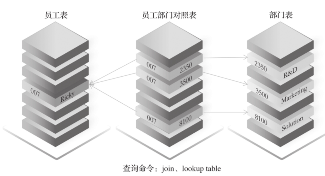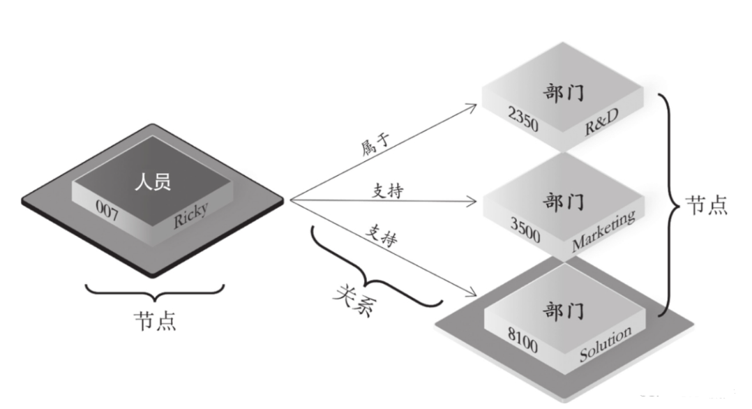 非原生图:用传统数据库(如 MySQL、HBase、Cassandra)的表结构存储 ——顶点放 “顶点表”,边放 “边表”。但查询关系时需多表关联,效率极低。比如查 “007 号员工所属部门”,需先查员工表定位 007,再查 “员工 - 部门对照表” 找部门 ID,最后查部门表取名称,多步关联耗时高。