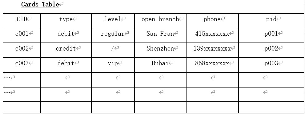 表:银行卡交易场景中的关系型数据表(3张)