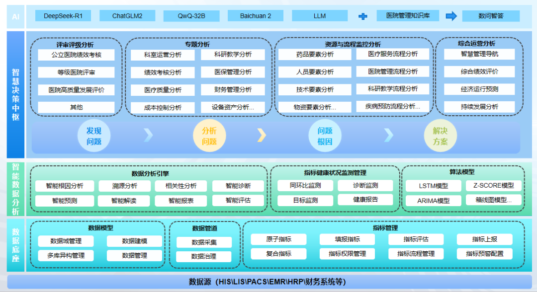 当前,医院在数字化管理中面临三大核心挑战:HIS、EMR 等多系统数据割裂导致“数据孤岛”,信息无法互通;核心运营指标提取流程繁琐、口径不一;异常问题定位滞后影响决策效率,影响管理决策的时效性与精准度。
