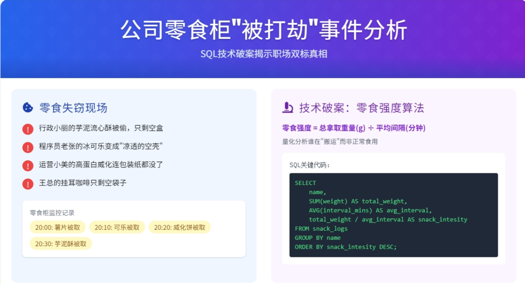 二、实习生的"破案黑科技":用 SQL 给零食柜"录口供"