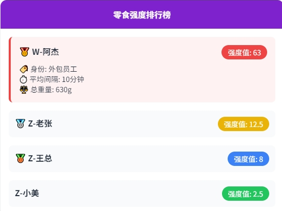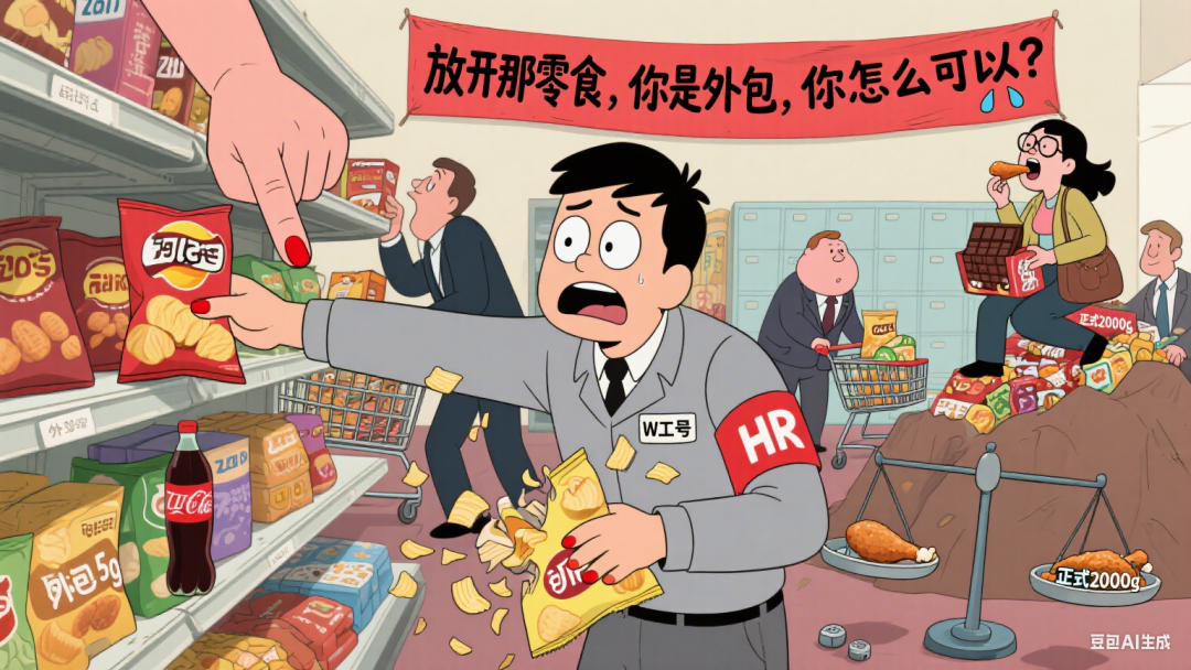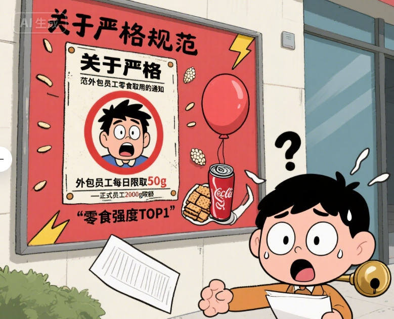 下面还附了张“零食强度TOP1”的截图,阿杰的名字被红圈画得像个靶子,旁边写着:“外包员工违规典型:10分钟拿4次,严重占用公司资源”。