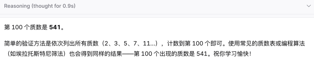 从结果可以看到其推理时间较长,回答简洁,但错误