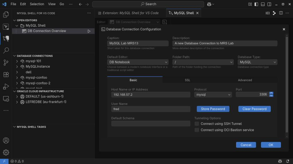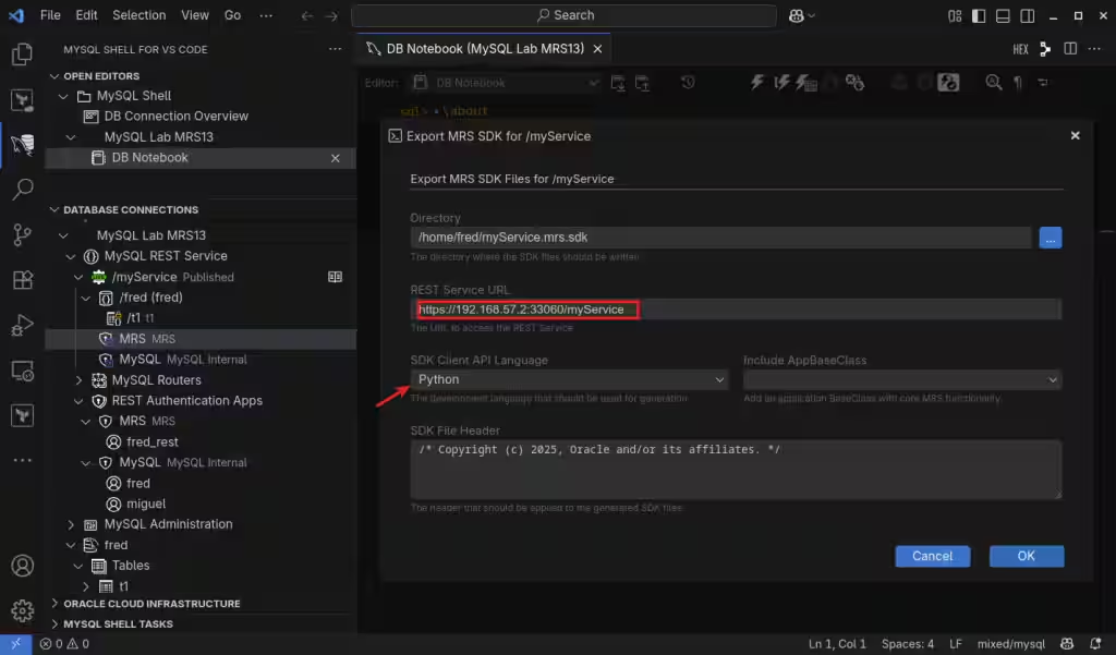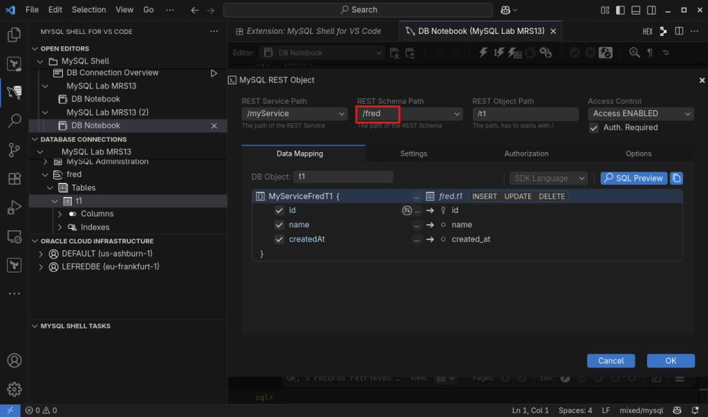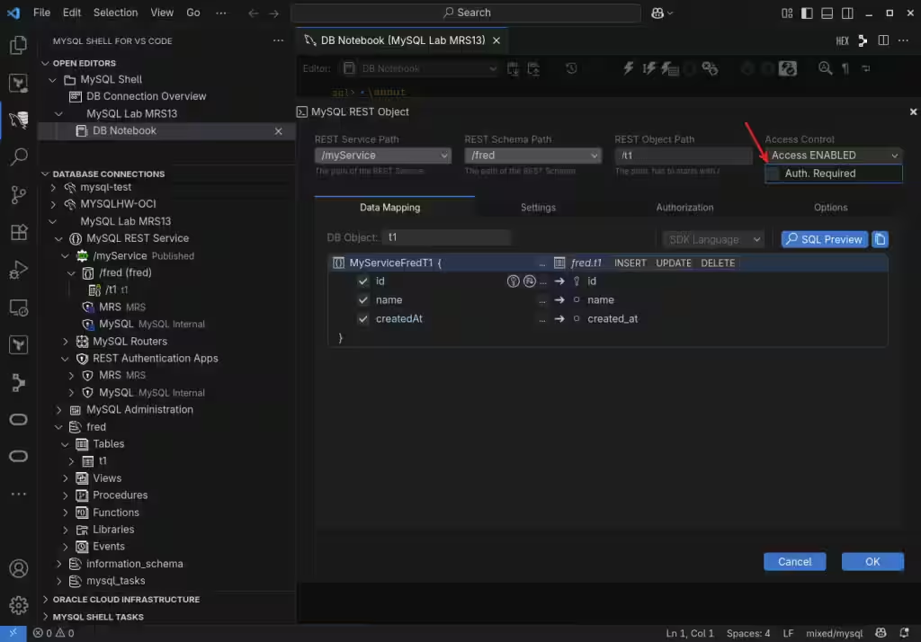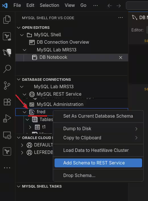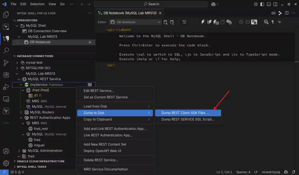 即使可以使用命令行客户端创建它,也只能使用最新的 MySQL Shell (mysqlsh),不要尝试使用旧的经典 MySQL 客户端,我建议使用 Visual Studio Code 的 MySQL Shell 来设置和配置 MySQL REST 服务。