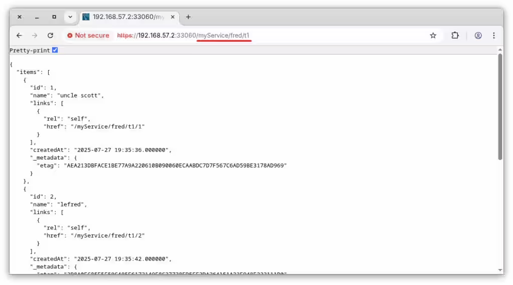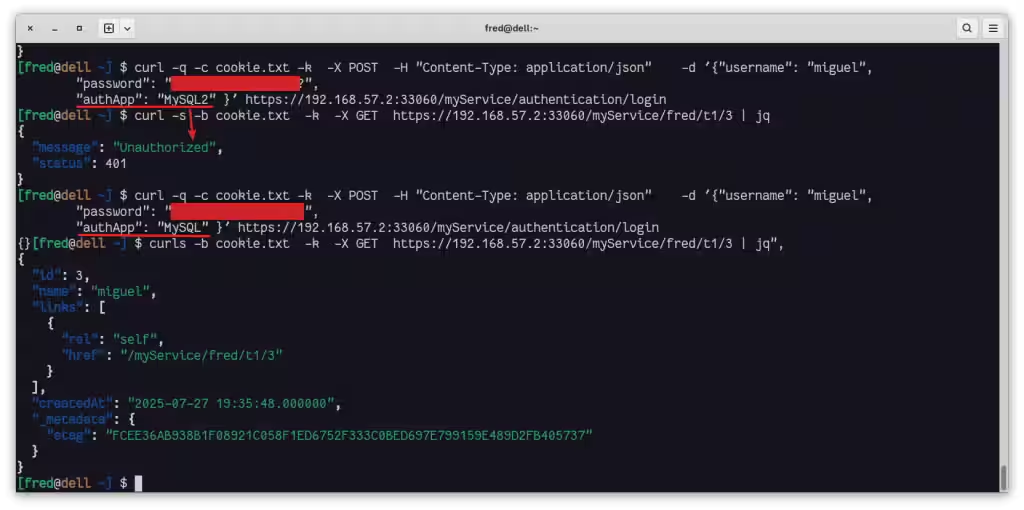 $ curl -s -b cookie.txt -k -X GET https://192.168.57.2:33060/myService/fred/t1 | jq