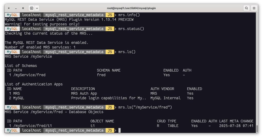 上周,我们发布了新的实验版本 MySQL 9.4.0-labs-MRS13,其中不再需要 MySQL Router,因为 REST 服务现在直接在 MySQL 服务器上运行。这也是我一直以来倡导的做法,现在有一个新的组件来处理此功能。