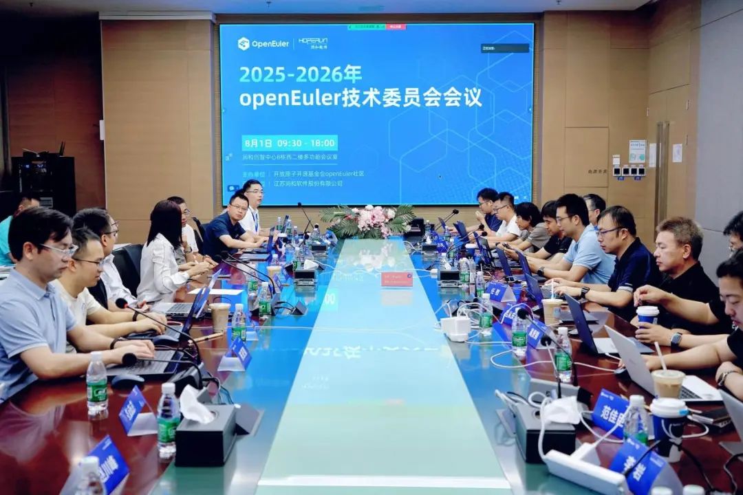 8月1日,由 OpenAtom openEuler(以下简称“openEuler”或“开源欧拉”)社区发起、江苏润和软件股份有限公司(以下简称“润和软件”)承办的2025-2026年openEuler技术委员会会议在南京圆满召开。来自华为、麒麟软件、统信软件、润和软件、Intel、中国移动、中科院软件所、一汽、windriver等 openEuler 生态共建企业的多位openEuler技术委员会委员齐聚一堂,围绕 openEuler 社区技术规划建设及openEuler未来发展方向开展深入研讨。润和软件副董事长马玉峰受邀出席并做开场致辞。2025-2026年openEuler技术委员会会议合影马玉峰在致辞中表示,社区最新数据显示,openEuler装机量已突破1000万套、汇聚2.2万全球贡献者,已成为数字中国的根力量。作为openEuler项目群黄金捐赠人,润和软件深度参与这一进程并在社区各领域共建中取得了一些进展和成果,包括推出AI原生操作系统HopeOS V24,实现昇腾芯片全适配与AI全栈兼容并大幅提升分布式训练效能,打造“云-边-端”智能物联解决方案,在应急安全领域创下单项目交付15000套的落地标杆。未来,润和软件将携手openEuler社区深耕AI与操作系统的融合创新,让开源之力浇灌千行百业。