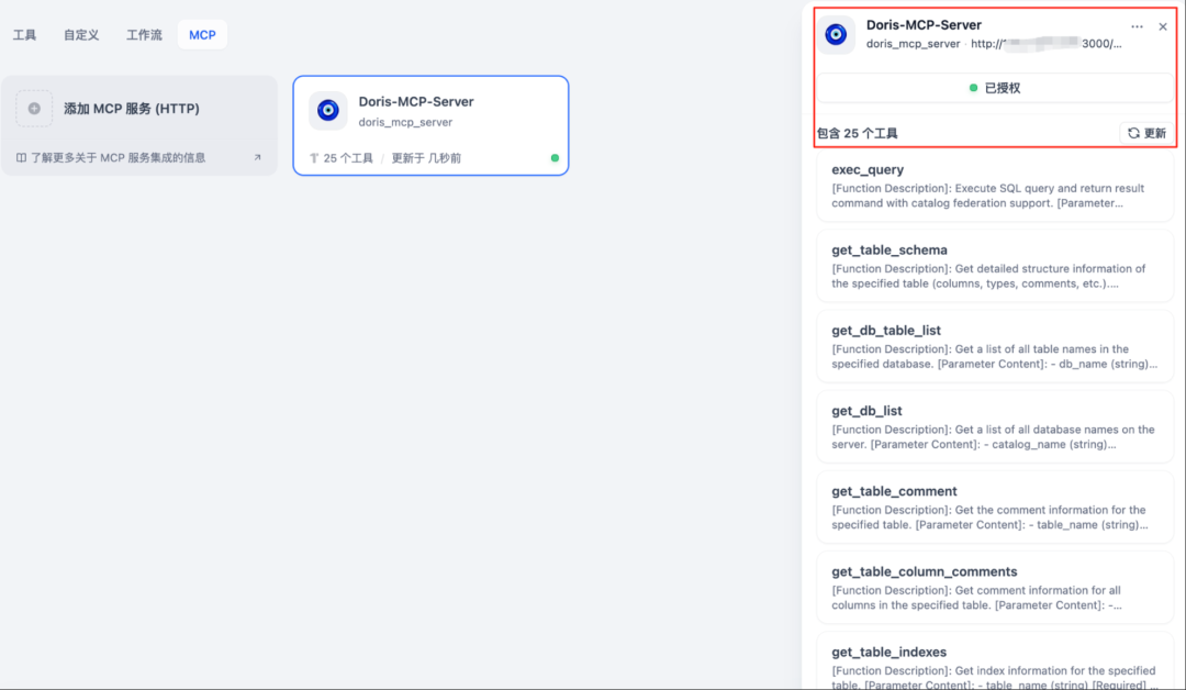 http://{doris mcp server ip}:3000/mcp