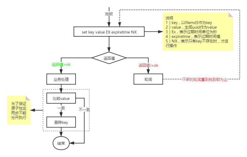 问题 2:如果释放锁时,每次都判断 value 是否一致,如果一致则删除 key,这个是两个步骤去执行,很容易出现原子性问题