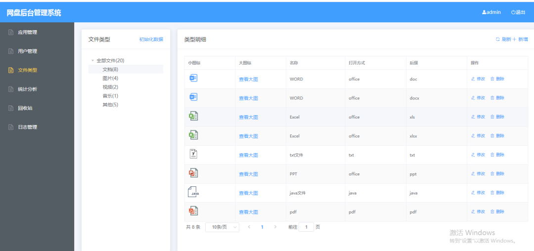 文件类型、格式、图标管理主要在网盘后台系统进行管理,因此新建