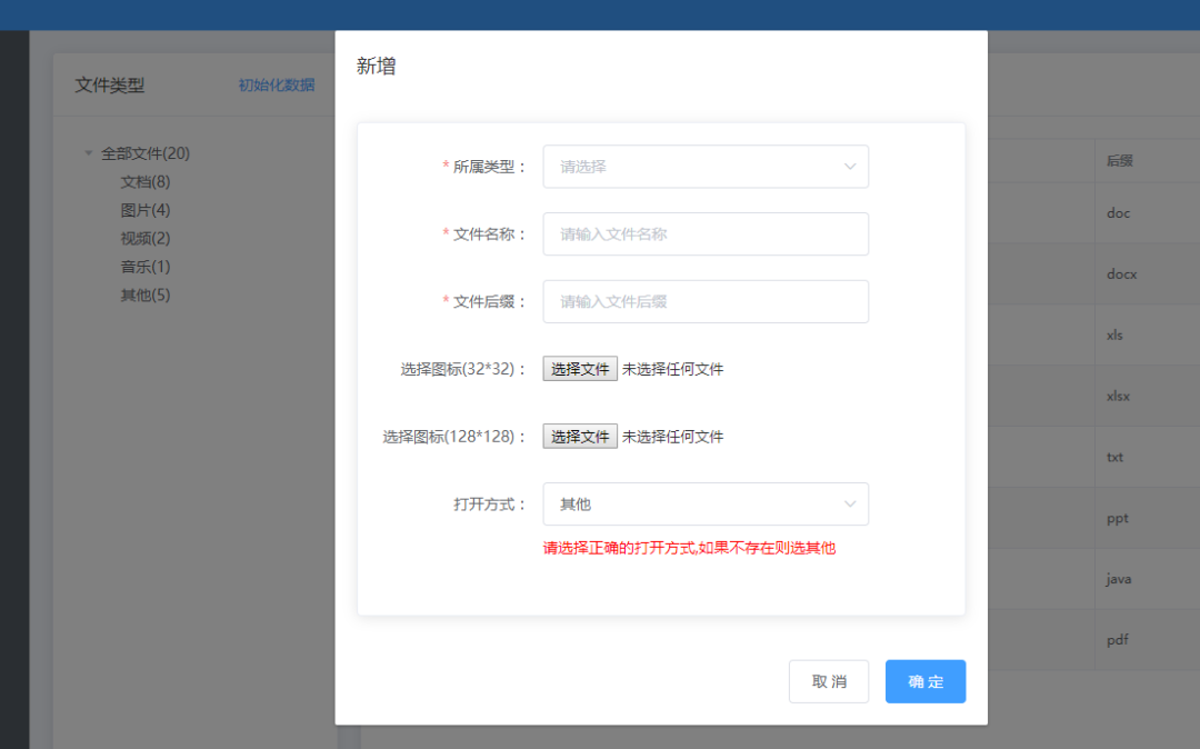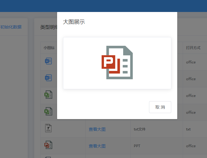其实解决方案很简单,就是在后台系统新增一个文件图标管理模块即可,具体效果图如下所示: